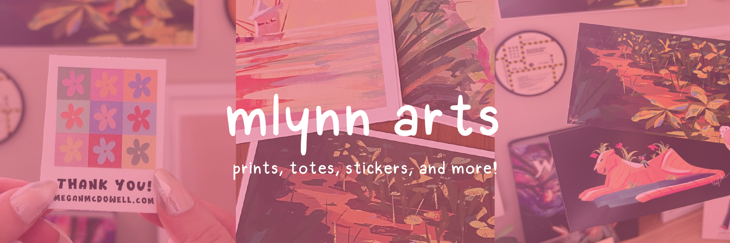 Stickers, prints, and tote bags.